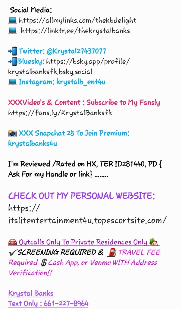 💋 Krystal Banks ( Curvy Bunny ) + Paris Rose = Dinamick Duo you Don't want to miss ❣ ➡ Just Krystal / 2Girl Requirements - You Must be Able To Host At Private Residence - Have CashApp or Venmo For Deposit / Travel fee 🚫 No BB, No Greek, No QV🚫 No Low Ballers 🚫 No CarDates, No Motels/ Hotels 📲 TeXtOnLy Paris Rose ( Mixed ) 661.4o9.1311 📲TextOnLy Krystal Banks ( Curvy Bunny) 6six1.2two7.89 six4 💻 Follow Me on IG krystalb_ent4u 📸 Content & Verification Snapchat Krystalbanks4u 💻 Have a PD Handle Check out Some Of My Reviews: https://privatedelights.ch/profile/Krystalbanksfk 🎬 Content Available Upon Text or Fans.ly ( Link Below or search my name ) 📽 https://fans.ly/KrystalBanksfk 📸 If You Want to Know more about Content Specials, Text me Now!